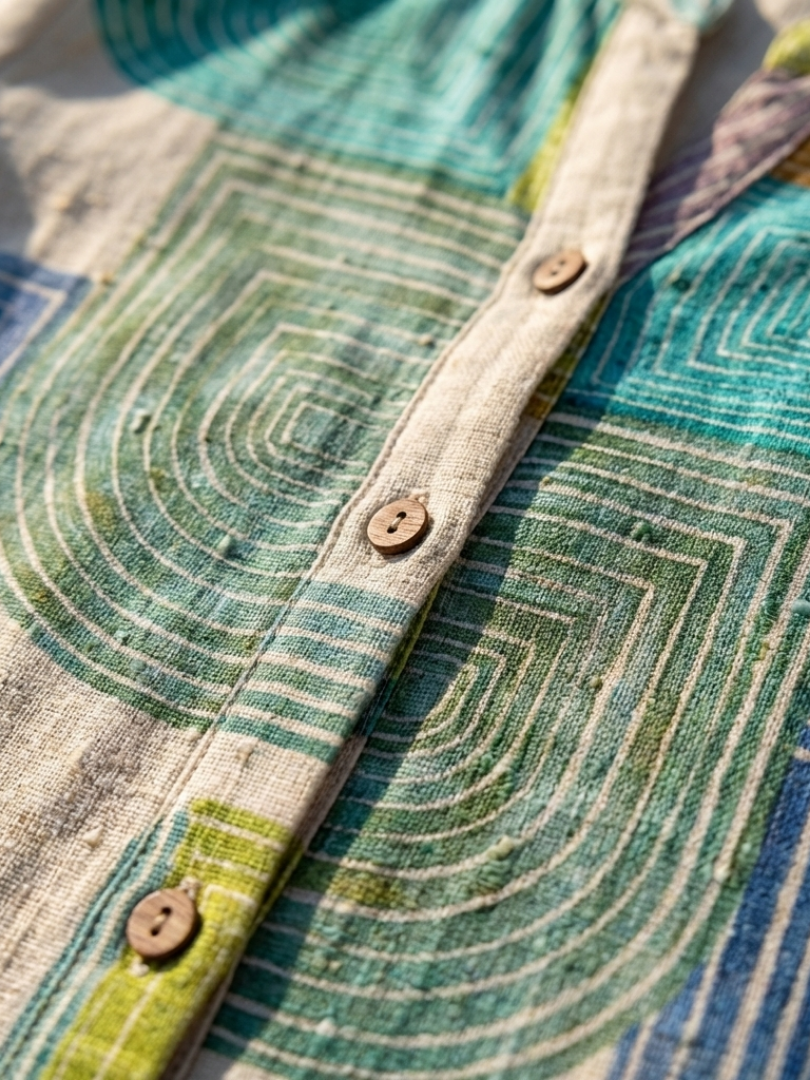 This dress features a straight silhouette with a button front and a structured geometric print. The fabric feels light and breathable, making it easy to wear through the day. It works well for casual outings and relaxed daily routines.